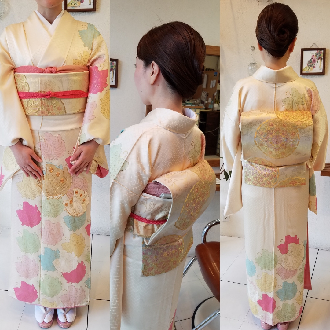 着付け 一覧豊中の美容室 サロンド ベル 大切な日だからこそ。。。2019.10.12お着物を着慣れている方は、 着方も所作もとてもくわしくて、 ホント頭が下がります。。。 腕を上げすぎたり、上半身をひねりすぎると、 衿が開いてくるかもしれない…。 歩幅が大きすぎると、 裾が広がってくるかもしれない…。 着付けをした後は、 いつもドキドキしながら、 何事もなく皆様が楽しんで下さっていることを、 願うばかりです。 &n続きを読む お着物で同窓会へ。。。2019.10.05高校の同級生は、Facebookのグループが、 中学の同級生は、LINEのグループが、 今の時代は便利なものです。 私自身日程が合わず、 同窓会に参加したことはないのですが、 写真だったり、文章だったりで、 近況を知ることはでき、 懐かしさと意外性と共に、 いつか参加したいなと、 思っております。 続きを読む お着物はサクラ色。。。2019.09.28入学式の思い出。 自分のことはいつのまにか、 忘れつつありますが。 甥っ子だったり、友達の子供だったり、 写真を見せてもらうたび、 あぁもうそんな年になったんだ…と、 時の速さに驚くばかりです。。。 仕事を通して、 その新しいスタートにかかわることは、 あまりなかったのですが。 ここ最近、 ご続きを読む 袴も華やかに。。。2019.09.21お祝い事は華やかに… 自分が主役なら尚の事。 私が卒業した頃は、 デジカメか使い捨てカメラが主流だったため、 落ち込むような写真もいっぱい残してありますが。 今のスマホ機能はすばらしい。 ありのままでも残せるし、 加工してひとつの作品としても残すことができる。 あの頃に戻りたい…。。。 切に思います。 続きを読む 大学は袴で卒業式。。。2019.09.11専門学校の卒業式。。。 大阪のミナミの方に学校があったため、 通勤ラッシュにつぶされながら、 なんとか会場に辿り着き、 ウキウキでいっぱい撮った卒業写真。 なのにそのカメラを、 卒業旅行のグアムでなくすという、 なんとも苦い思い出の卒業写真。。 カメラに写っている私を、 できるだけ焼き続きを読む 高校生も袴で出席。。。2019.09.07時代は変わるものなのか… それとも昔からあったのか。。。 私の高校の卒業式は、 使い捨てカメラをフルに使い、 制服の胸元に卒業おめでとうのリボンをつけ、 大量の写真を撮ったという、 ざっくりした記憶はあるのですが。 顔や髪型もいたって普通の仕上がりで、 今の華やかさが少しばかりうらやましいなと。 &nbs続きを読む 先生も袴で卒業式。。。2019.08.28私の忘れられない卒業式。。。 中学校の卒業式。 担任だった男の先生が、 誰よりも号泣して、みんなが戸惑ったあの日。 小学校の卒業式。 自分が卒業するのに、 仰げば尊しのピアノ伴奏をしたあの日。 たった一日なのに、 覚えているという事は、 私にとって、 大切な思い出になっているのだと思います。 続きを読む 残しておきたい七五三。。。2019.08.24私自身の七五三の記憶はほとんどないのですが。 姉の子、友達の子、親戚の子。。。 記念としても残しておきたい大切な行事だなぁと、 最近つくづく感じております。 私が着ていた着物も、 夏期休暇で実家に帰った時、 母親が見せてくれました。 裁縫が得意だった祖母が、 私と姉にと、作ってくれたもの。。。 大事にとっ続きを読む 息子さんの結婚式。。。2019.08.17姉妹、親戚、お友達。。。 私も何度も出席した、 結婚式。 受付も余興も髪のセットもしましたが、 着付けはお初でした。 何年も前から、 おばあ様、お母様、息子様。 3世代にわたって来ていただいている、 大切なお客様。 いろんな話をさせて頂いているからこそ、 とてもうれしかったです。 そんなお手伝いも続きを読む 入学式、卒業式も、ぜひお着物で。。。2019.08.10ご入学、ご卒業。 大切に育ててきたお子さんだからこそ、 感慨深いものがあるのだと思います。 お母様ご自身も、 素敵な思い出となる記念すべき日。。。 お家に眠っているお着物たちはありませんか?? 着てみたいけども、 着ることが出来なく、泣く泣くあきらめてしまったあの日… ぜ続きを読む «前ページ | 次ページ» | コラム全体